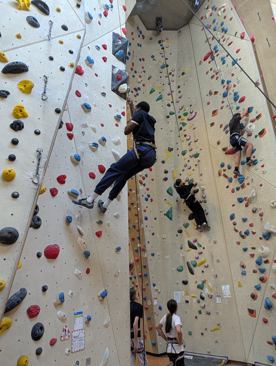 Zuerst konnten die Klassensprecher ihr Können beim Bouldern zeigen – hier war Kraft, Mut und Teamgeist gefragt! Anschließend ging es zum gesicherten Klettern, wo die Schülerinnen und Schüler hoch hinaus durften. Dabei sicherten und unterstützten sie sich gegenseitig – ganz wie es echte Klassensprecher im Schulalltag tun.