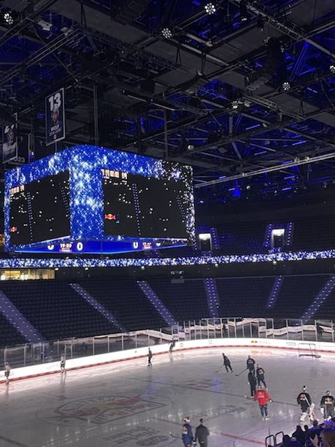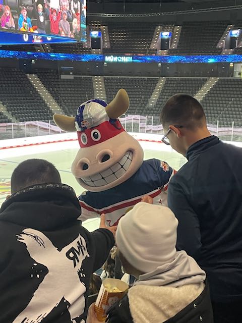 Die Light-Show war atemberaubend. Gut, dass wir filmen und Fotos machen durften. Moderator Wolfie erklärte viel und stellte ein paar Fragen über Eishockey. In dieser Zeit kamen die Spieler aufs Eis. Dann konnten wir sehen, wie so ein Training abläuft. Draußen konnte man sich Essen und Getränke kaufen. Außerdem durfte man am Glücksrad drehen und bekam Autogramme. Auch ein Airhockey-Tisch war vorhanden. Viel zu schnell verging die Zeit.