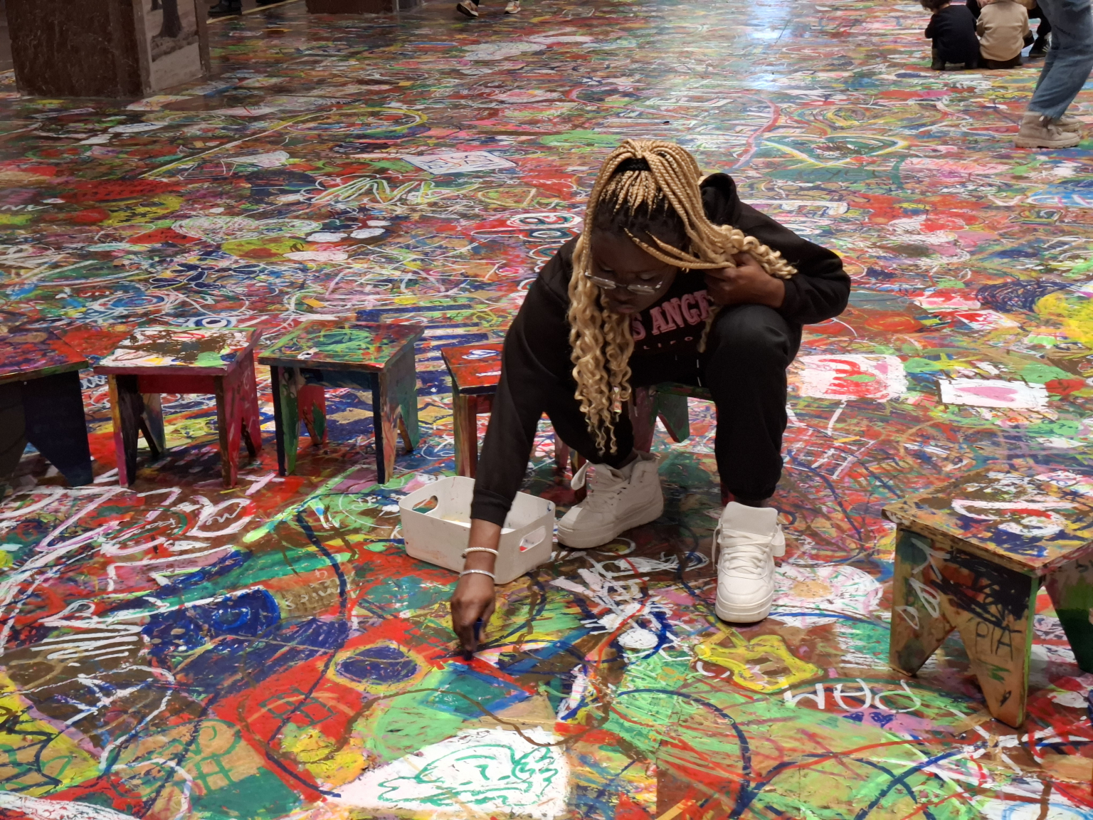 Zu Beginn konnten die Schüler gleich selbst aktiv werden und sich auf dem Boden verewigen.
