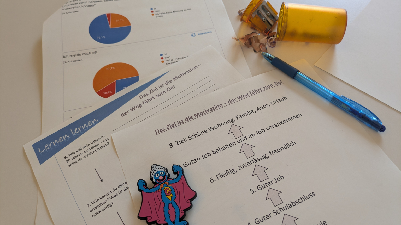 Im Abschlussjahr kommts noch mal richtig drauf an. Den Kopf in den Sand stecken?! Nein – im Gegenteil!!! Wir mobilisieren alle Kräfte und entwickeln die Superpower! Wir wissen ja jetzt für wen: Für uns selbst und unser Leben (spätestens seit dem Motivations-Projekt der Schulsozialarbeit). Die, die geglaubt haben, sie seine hoffnungslose Fälle, sind bereits mit der ersten 3 ihres Lebens in Mathe nach Hause gegangen.