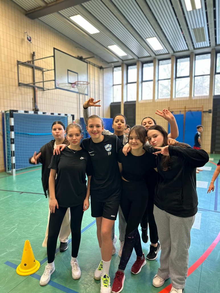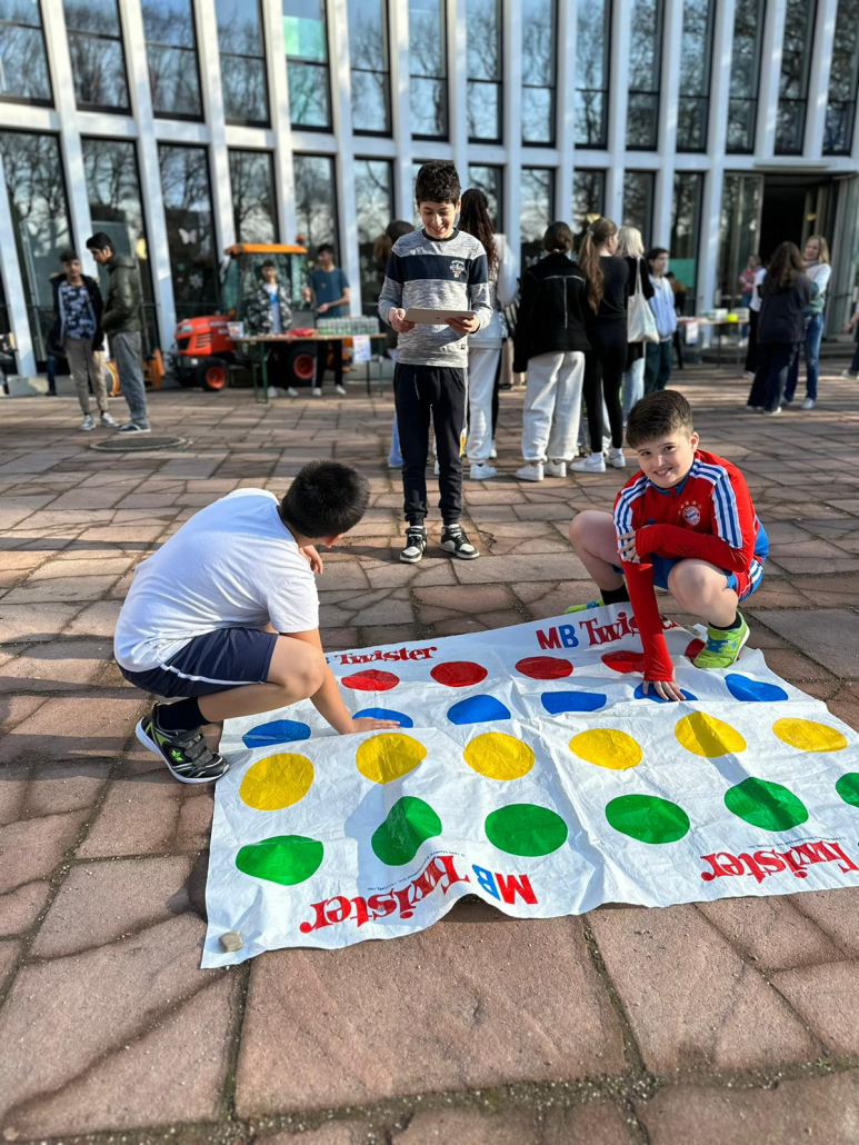 Während des Turniers stand Fairplay im Mittelpunkt, und die Unterstützung der restlichen Klasse war spürbar, als sie ihre Teams lautstark anfeuerten. Selbst während der Pausen zwischen den Spielen waren auf dem Pausenhof Spielstationen für alle Altersgruppen aufgebaut. Hier konnten wir sehen, wie gut unsere Schülerinnen und Schüler zusammenarbeiten und Spaß haben. Den Kuchenverkauf organisierte die Klasse D7/8.